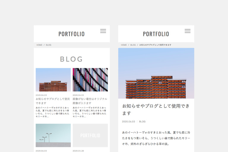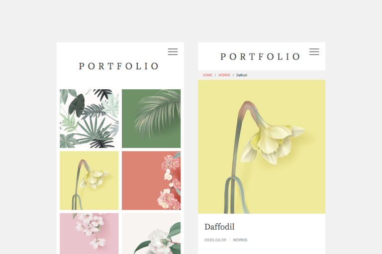 作品を見せることにこだわったシンプルなデザイン。内容に合わせてカスタマイズも出来ます。